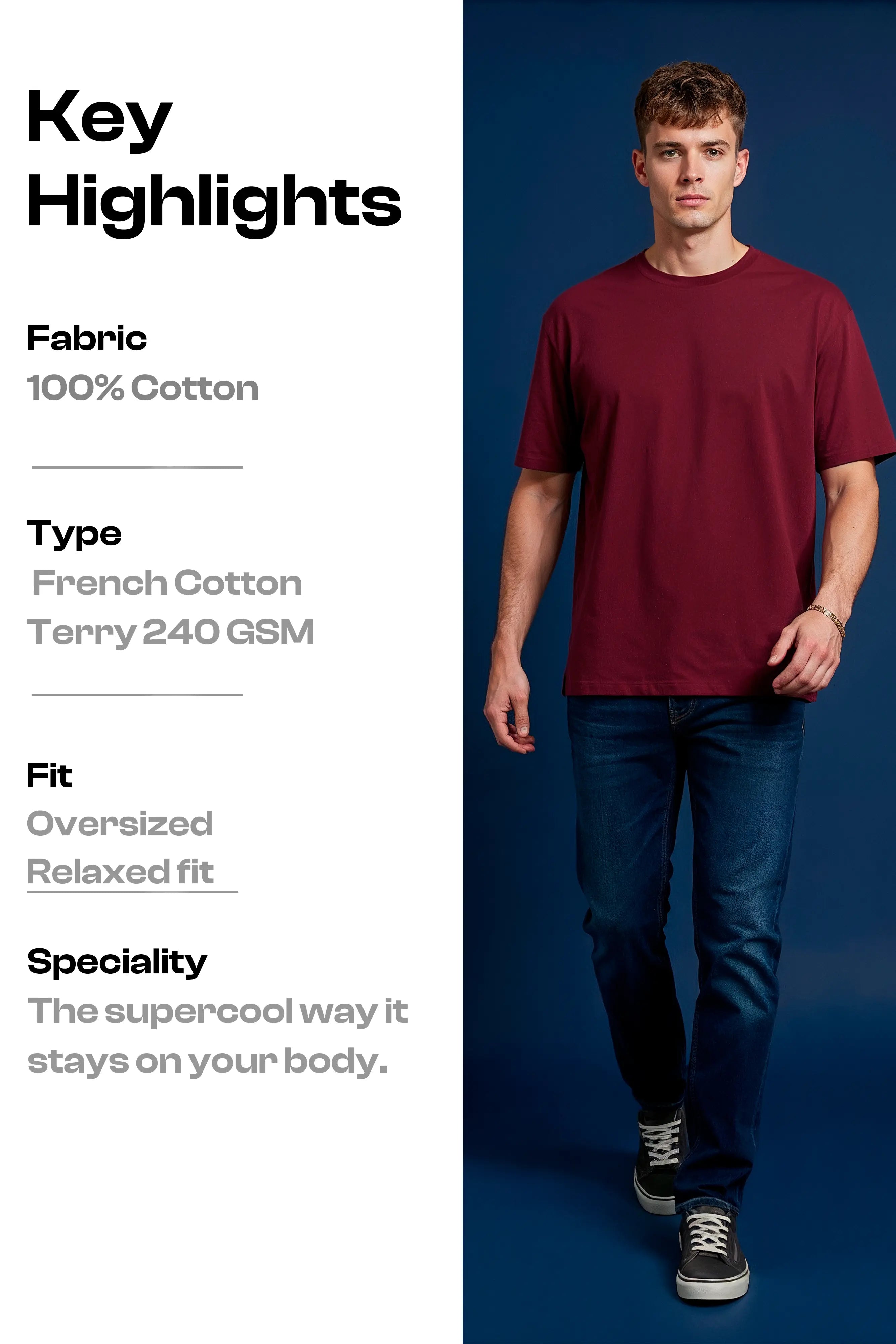 Product details :- Premium Fabric: Crafted from high-density 240 GSM French Terry Cotton, offering a substantial, high-quality feel that drapes perfectly. It's breathable, durable, and ideal for year-round comfort. Modern Fit: Features a contemporary oversized fit with dropped shoulders, providing a relaxed, on-trend silhouette that ensures maximum comfort and freedom of movement. Bold Design: Inspired by Akatsuki Tobi, this piece features premium chest detailing — a subtle yet unmistakable statement for those who know.” Classic Details: A timeless round neck (crew neck) makes it a versatile staple that pairs effortlessly with jeans, joggers, or shorts. Dispatch Location: We ship your order directly from our hub in Chandigarh, India. |