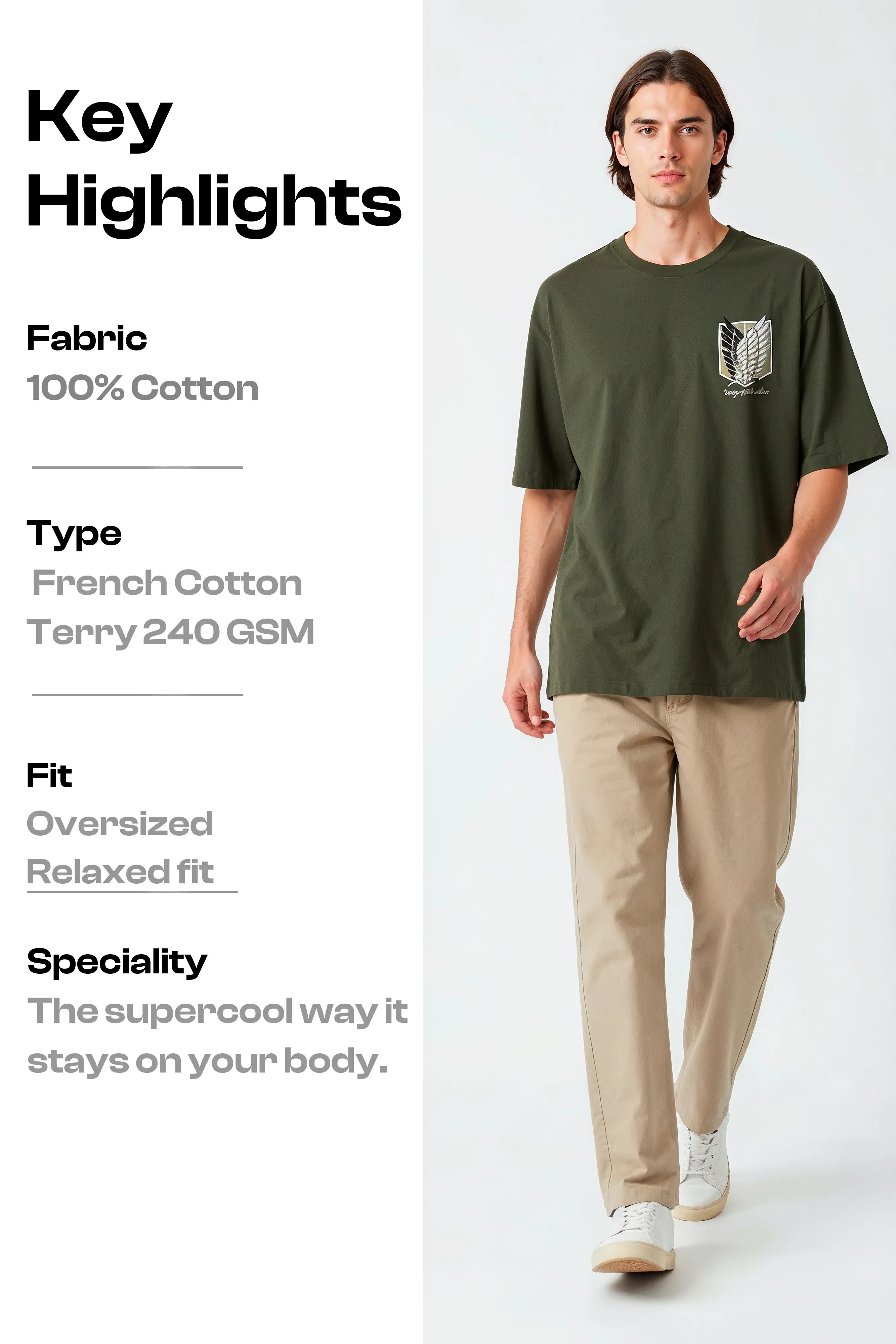 Product details :- Premium Fabric: Crafted from high-density 240 GSM French Terry Cotton, offering a substantial, high-quality feel that drapes perfectly. It's breathable, durable, and ideal for year-round comfort. Modern Fit: Features a contemporary oversized fit with dropped shoulders, providing a relaxed, on-trend silhouette that ensures maximum comfort and freedom of movement. Bold Design:Features the iconic Attack on Titan "Scout Regiment" design, with high-quality detailing on the chest — a subtle yet instantly recognizable statement for true fans. Classic Details: A timeless round neck (crew neck) makes it a versatile staple that pairs effortlessly with jeans, joggers, or shorts. Dispatch Location: We ship your order directly from our hub in Chandigarh, India. |
