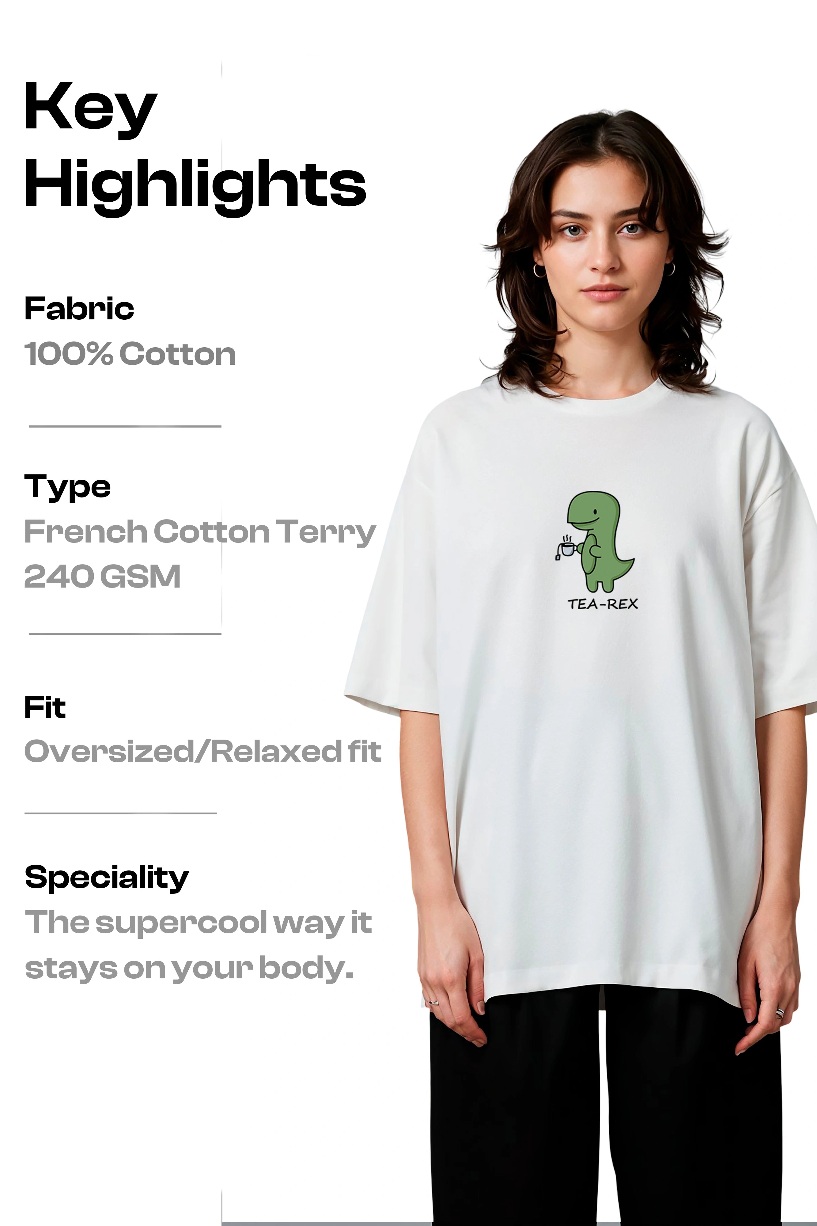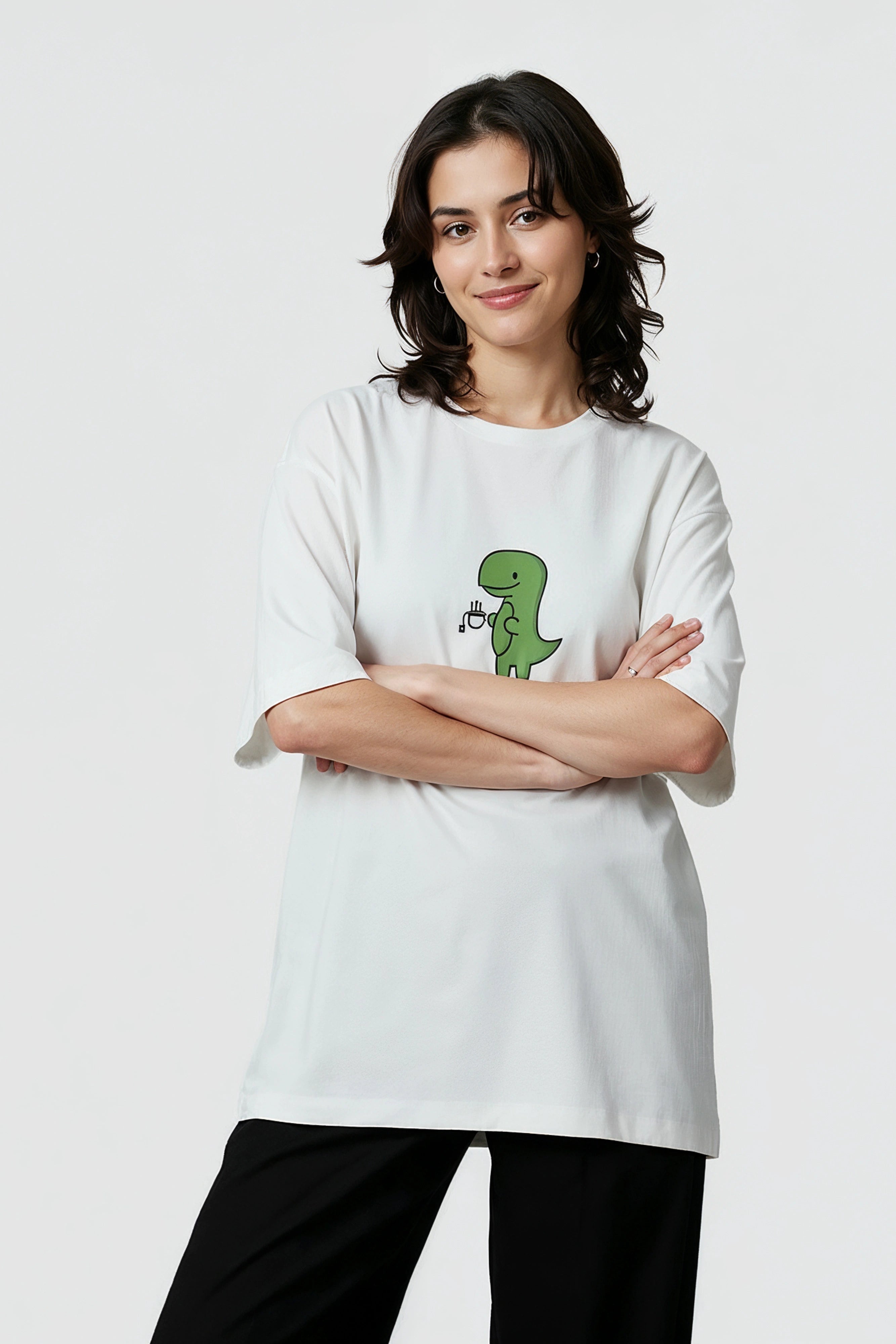 Bold Design: Features the creative Tea- rex dainasaur desing with green solid colour.as a premium, high-quality detail on the chest. A subtle yet instantly recognizable statement for those in the know. Classic Details: A timeless round neck (crew neck) makes it a versatile staple that pairs effortlessly with jeans, joggers, or shorts. |