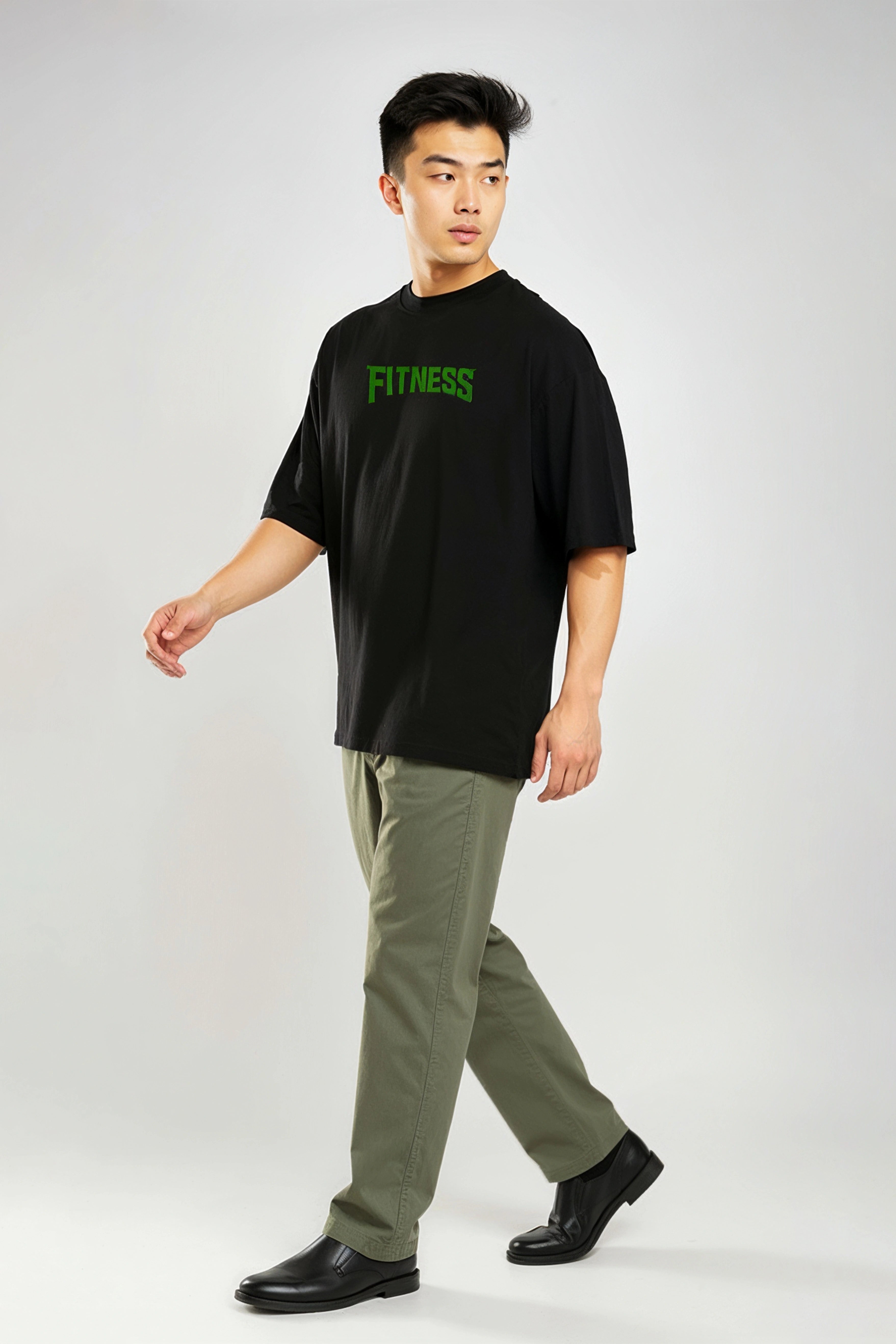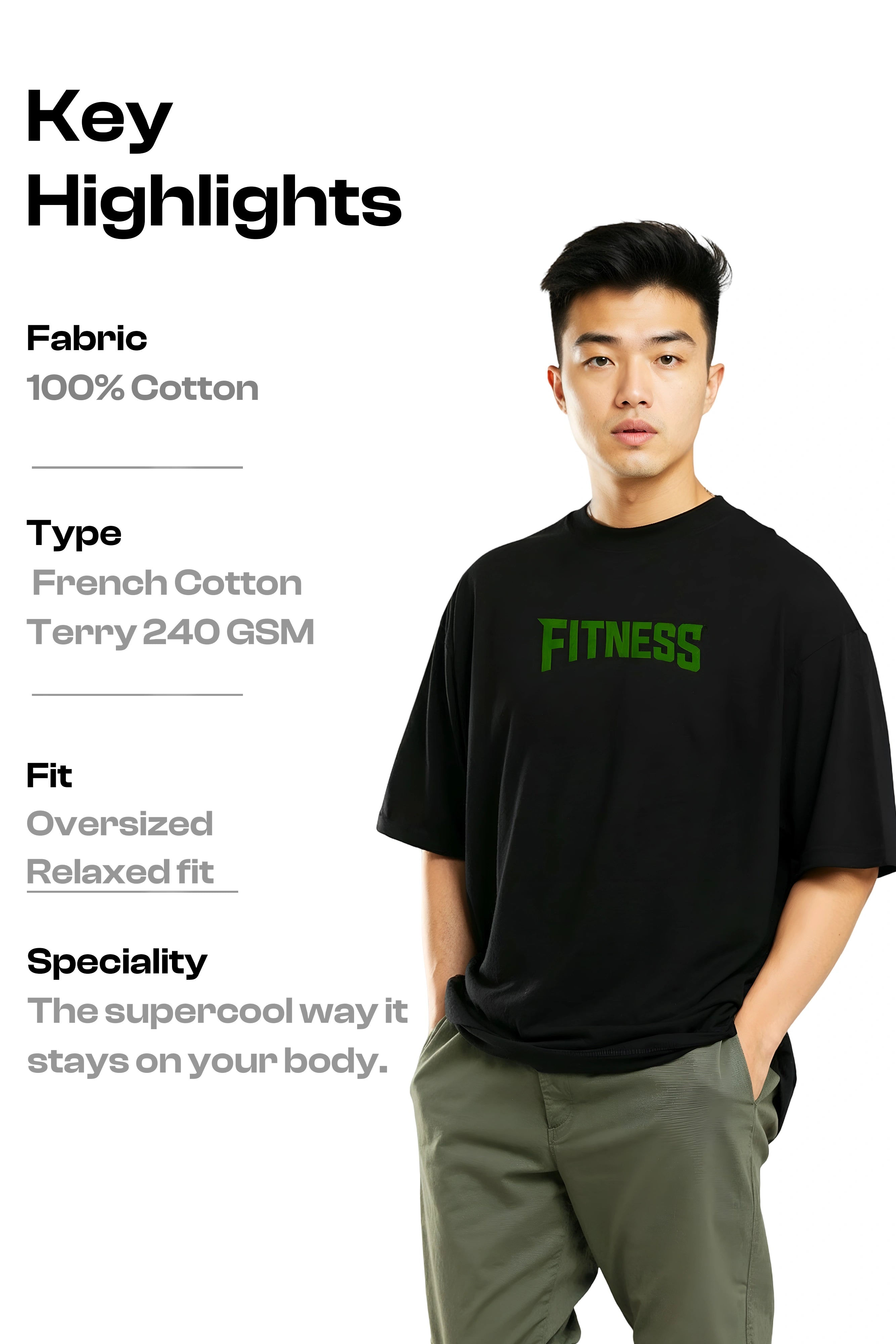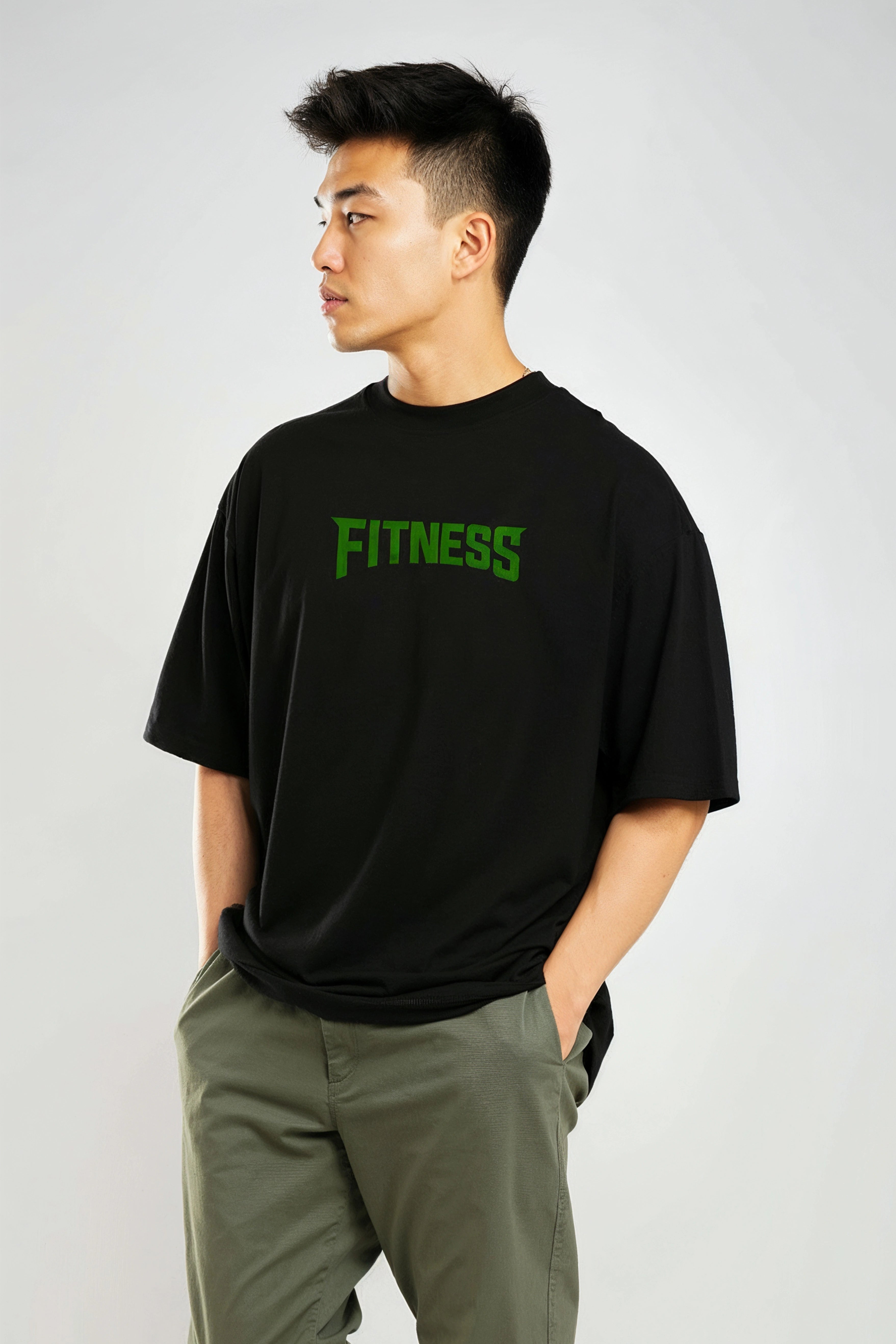 Modern Fit: Features a contemporary oversized fit with dropped shoulders, providing a relaxed, on-trend silhouette that ensures maximum comfort and freedom of movement. Bold Design: Features the Typography Design fitnees.as a premium, high-quality detail on the chest. A subtle yet instantly recognizable statement for those in the know. Classic Details: A timeless round neck (crew neck) makes it a versatile staple that pairs effortlessly with jeans, joggers, or shorts. |