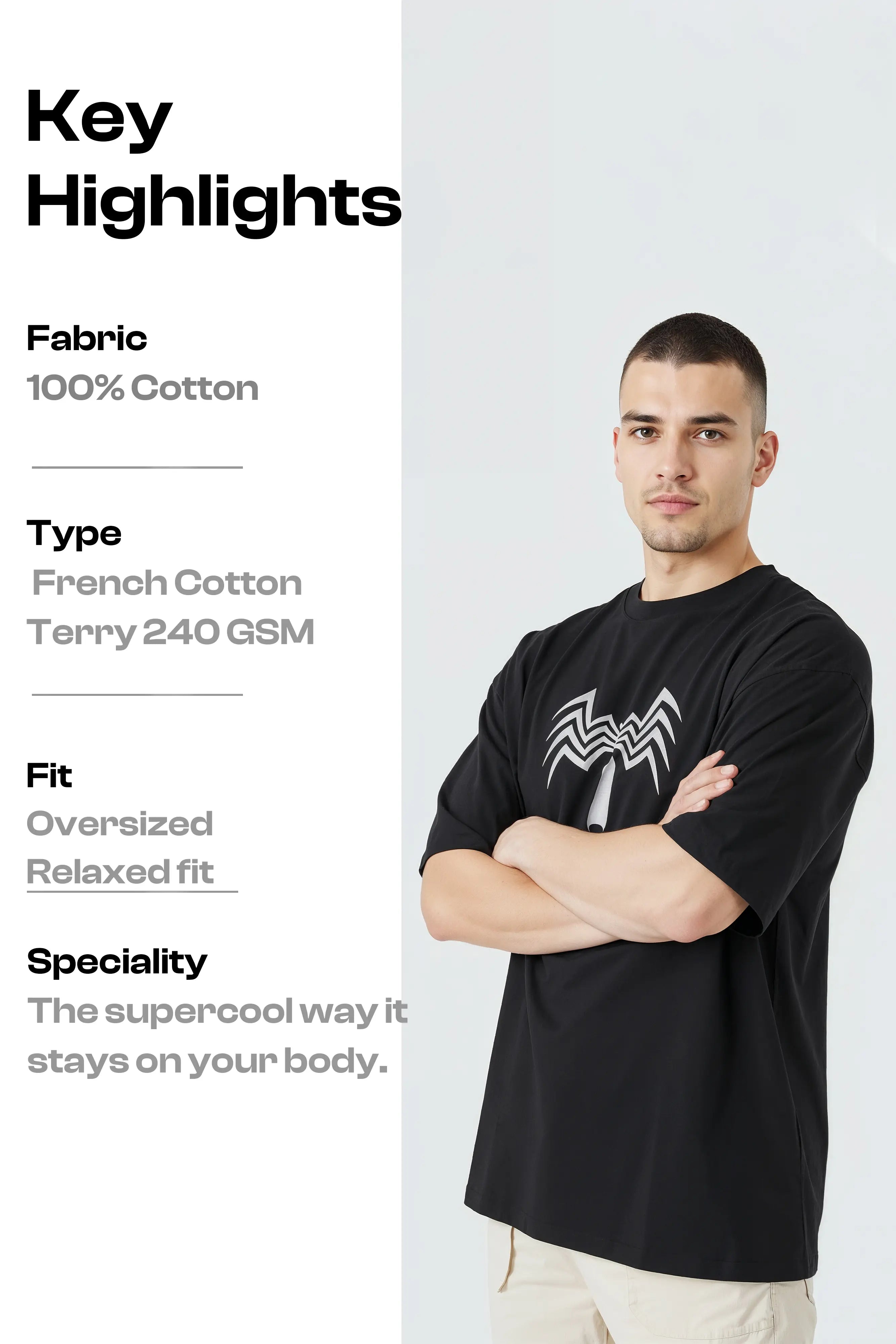 Product details :- Premium Fabric: Crafted from high-density 240 GSM French Terry Cotton, offering a substantial, high-quality feel that drapes perfectly. It's breathable, durable, and ideal for year-round comfort. Modern Fit: Features a contemporary oversized fit with dropped shoulders, providing a relaxed, on-trend silhouette that ensures maximum comfort and freedom of movement. Bold Design: Features the comic design Venom from marvel universe, high-quality detail on the chest. A subtle yet instantly recognizable statement for those in the know. Dispatch Location: We ship your order directly from our hub in Chandigarh, India. |