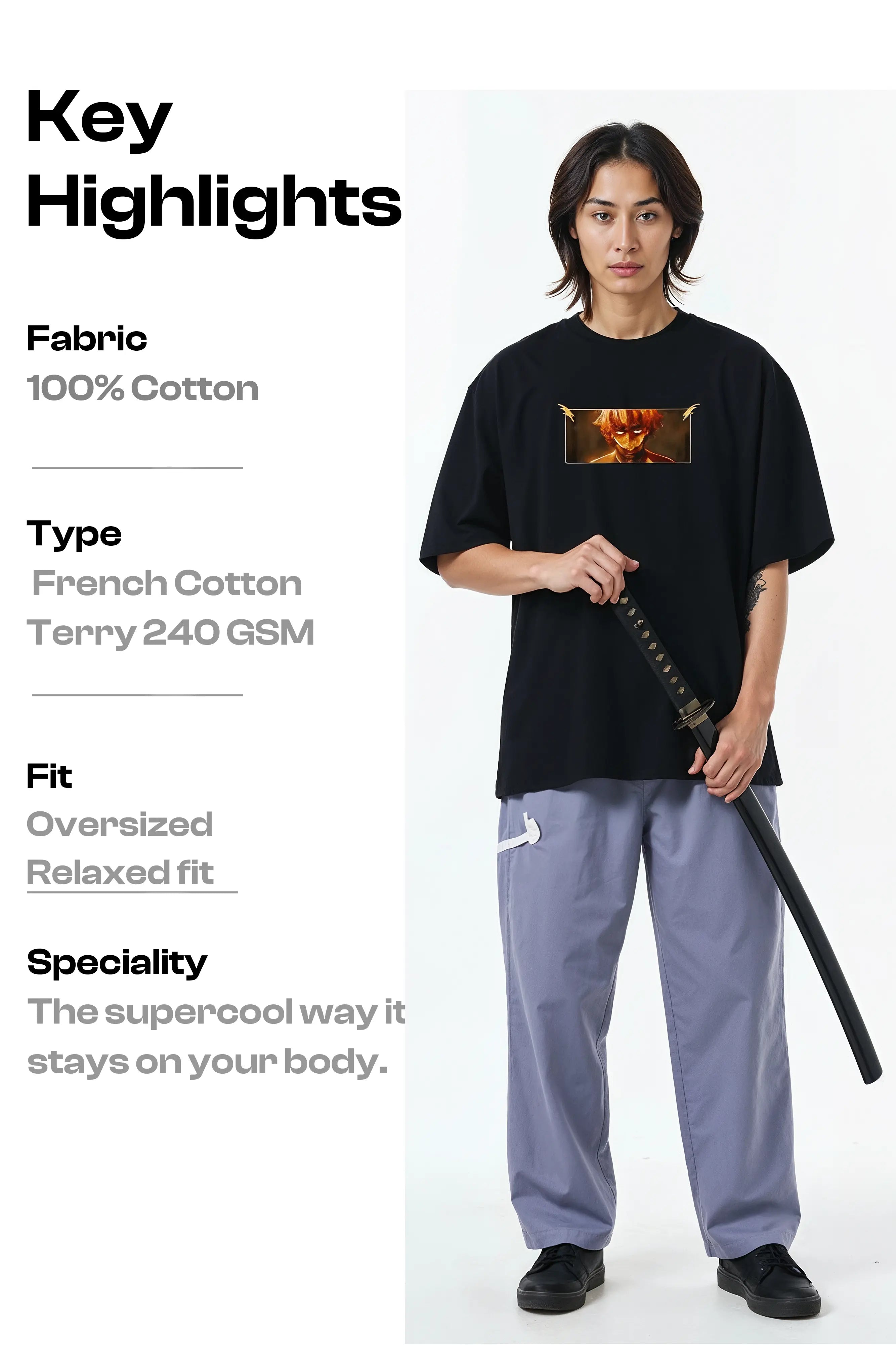 Product details :- Street-Style Essential: The 240 GSM Terry Cotton Oversized Graphic Tee Elevate your wardrobe with our premium oversized graphic t-shirt, meticulously designed for those who refuse to compromise on style or comfort. This isn't just a t-shirt; it's a statement piece crafted from luxurious, heavyweight fabric that offers a structured look while feeling incredibly soft against your skin. Premium Fabric: Crafted from high-density 240 GSM French Terry Cotton, offering a substantial, high-quality feel that drapes perfectly. It's breathable, durable, and ideal for year-round comfort. Modern Fit: Features a contemporary oversized fit with dropped shoulders, providing a relaxed, on-trend silhouette that ensures maximum comfort and freedom of movement. Bold Design:Features the iconic Demon Slayer Zenitsu character design, with high-quality detailing on the chest — a subtle yet instantly recognizable statement for true fans.. Classic Details: A timeless round neck (crew neck) makes it a versatile staple that pairs effortlessly with jeans, joggers, or shorts. Dispatch Location: We ship your order directly from our hub in Chandigarh, India. |
