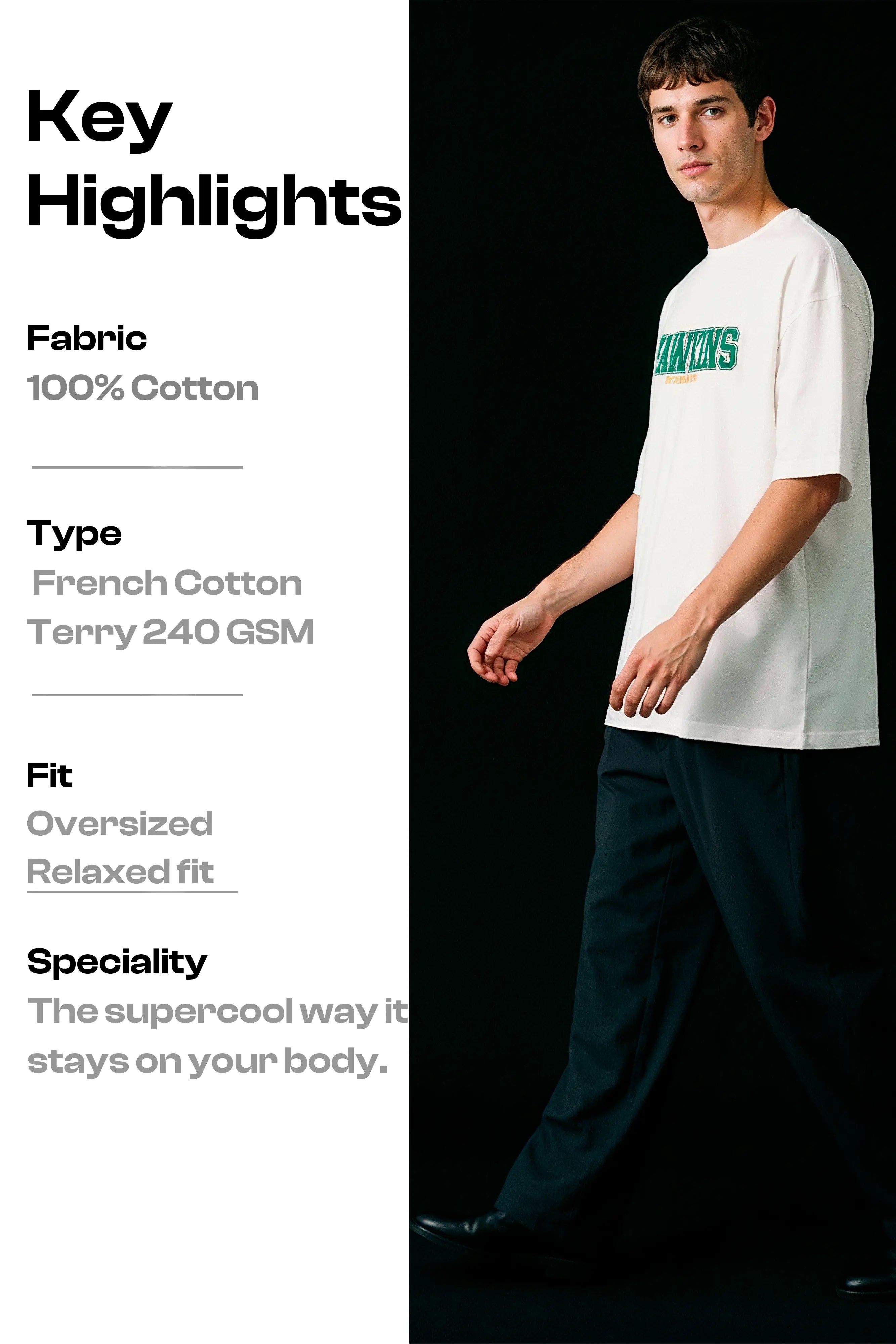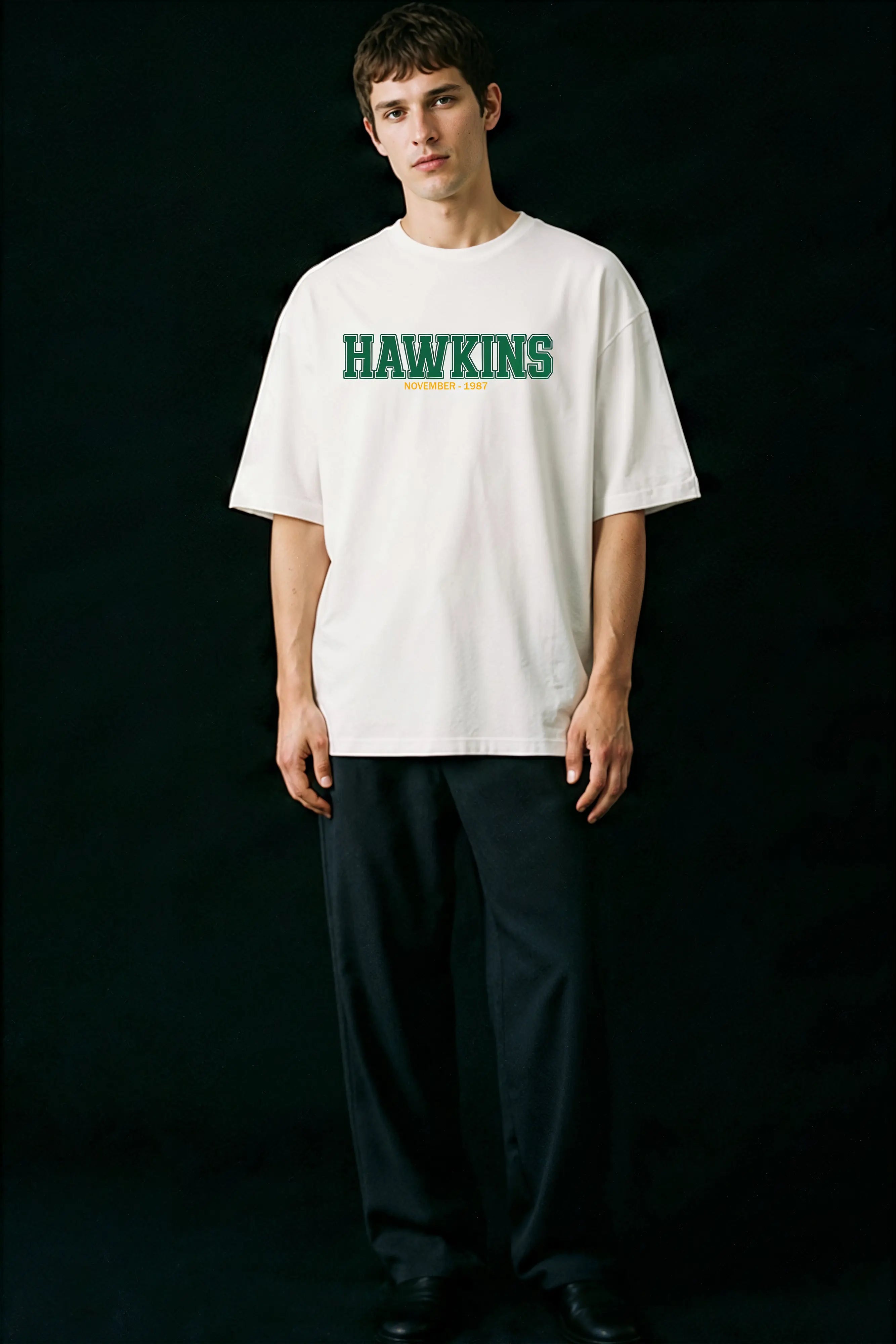 Product details :- Street-Style Essential: The 240 GSM Terry Cotton Oversized Graphic Tee Elevate your wardrobe with our premium oversized graphic t-shirt, meticulously designed for those who refuse to compromise on style or comfort. This isn't just a t-shirt; it's a statement piece crafted from luxurious, heavyweight fabric that offers a structured look while feeling incredibly soft against your skin. Key Highlights: Premium Fabric: Crafted from high-density 240 GSM French Terry Cotton, offering a substantial, high-quality feel that drapes perfectly. It's breathable, durable, and ideal for year-round comfort. Modern Fit: Features a contemporary oversized fit with dropped shoulders, providing a relaxed, on-trend silhouette that ensures maximum comfort and freedom of movement. Bold Design:Features a Stranger things DesignHawkinsNovember 1987 statement piece for true fans.. Classic Details: A timeless round neck (crew neck) makes it a versatile staple that pairs effortlessly with jeans, joggers, or shorts. Size & Fit Fit: Oversized & Relaxed Suggestion: For the perfect oversized look, please select your usual size. Material & Care Fabric: 100% Premium Terry Cotton Weight: 240 GSM (Grams per Square Meter) Care Instructions: To keep your tee looking its best: Machine wash cold, inside-out with similar colors. Do not tumble dry. Hang dry in the shade to preserve the fit and print. Do not dry clean or bleach. If needed, iron on the reverse side at a low temperature. Avoid ironing directly on the print. Shipping & Delivery Dispatch Location: We ship your order directly from our hub in Chandigarh, India. Delivery Time: Please allow 4 to 7 working days for delivery anywhere in India (PAN India) |